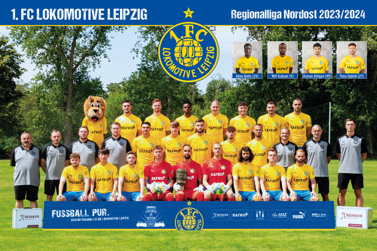 Mannschaftsleiter Frank Weiske, Mannschaftsbetreuer Silvio Schoenke, Mannschaftsarzt Florian Werner, Physiotherapeut Tolge Steinmeyer, Julian Weigel (32), Niklas Köllner (21), Maximilian Schütt (23), Nico Rieger (16), Farid Abderrahmane (8), Cheftrainer Almedin Civa, Torwart-Trainer Tomislav Piplica, Co-Trainer Robin Hintz